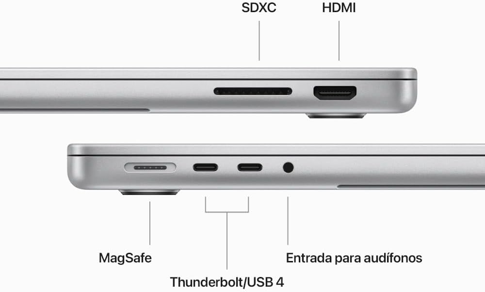 Portátil – Apple MacBook Pro 36.1cm (14.2″) – Apple M3 – 16GB – 1TB SSD – Plata – Apple M3 Chip – 3024 x 1964 – Apple – Tecnología True Tone, Pantalla Liquid Retina – Cámara Frontal/Cámara Web – 22Horas Duración de pilas – IEEE 802.11ax Wireless LAN Standard