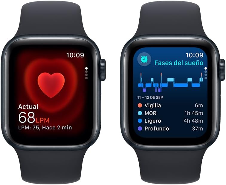 Apple Watch SE Smart Watch – 40mm Case Height – 34mm Case Width – Media noche Case Color – Media noche Band Color – Cristal Body Material – Aluminio Case Material – LAN inalámbrica – LTE, UMTS – Sensor óptico de pulso cardíaco, Sensor de temperatura, Compás Digital, Altímetro, Sensor Gyro, Acelerómetro, Sensor de luz ambiental – Monitorización de sueńo, Mensajes de texto, Teléfono, Reproductor de música, Altavoz – Pulso cardíaco, Calidad de sueño – Apple S9