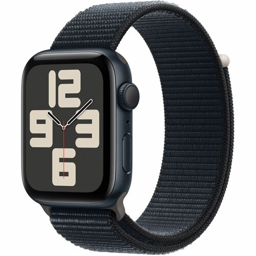 Apple Watch SE Smart Watch – 44mm Case Height – 38mm Case Width – Media noche Case Color – Media noche Band Color – Cristal Body Material – Aluminio Case Material – LAN inalámbrica – Sensor óptico de pulso cardíaco, Sensor de temperatura, Compás Digital, Altímetro, Sensor Gyro, Acelerómetro, Sensor de luz ambiental – Monitorización de sueńo, Mensajes de texto, Teléfono, Reproductor de música, Altavoz – Pulso cardíaco, Calidad de sueño – Apple S9Dual-core
