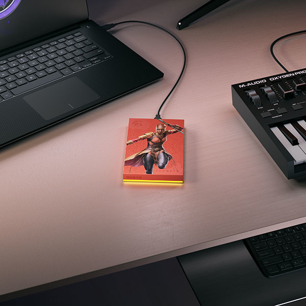 | Información de Marketing | La pieza de colección perfecta para un magnífico guerrero; la unidad Okoye™ Drive con licencia oficial. Esta unidad de disco duro externa Special Edition FireCuda, diseñada con la fuerza de élite de la líder de la Dora Milaje, hace que su sistema se distinga gracias a su iluminación LED amarilla. Además, puede almacenar una gran cantidad de medios, archivos y juegos gracias su gran capacidad. Características principales: .- Esta unidad de disco duro externa está inspirada en el universo de Pantera Negra. .- El diseño de esta unidad está equipado con la fuerza de la líder de la Dora Milaje, Okoye. .- La iluminación LED amarilla le da a la unidad una ráfaga de color adicional. .- Ilumine la atmósfera con luz LED RGB personalizable e integrada. .- Compatible con PC, Mac, PlayStation y Xbox. .- Un diseño audaz para complementar la colección temática de Marvel™ en su oficina, sala de estar o estación de batalla. .- Con hasta 2 TB de capacidad, podrá acumular una gran cantidad de juegos, archivos y medios. .- El diseño liviano le posibilita llevar toda la biblioteca de viaje. .- Conectividad USB 3.2 de 1ra. generación alimentada por bus para compatibilidad sencilla y más ordenada. .- Puede estar tranquilo, ya que incluye una garantía líder en la industria de 1 año y 1 años de Rescue Data Recovery Services para la recuperación de datos |