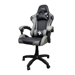 Silla Stylos Gamer Negro/Gris/PVC/Ajustable/Acero/145Grados/ R115kg