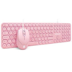 BROBOTIX COMBO KIT TECLADO MULTIMEDIA Y RATÓN USB COLOR ROSA EDICIÓN ESPECIAL “PINK” – PC Escritorio Laptop Notebook – Numerico Windows